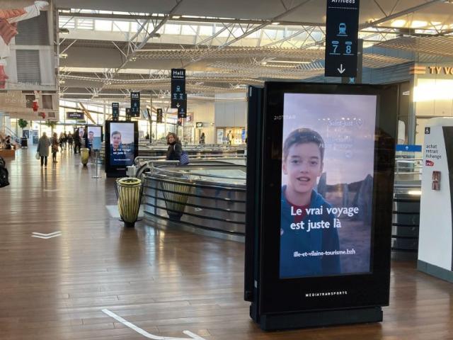 Le DOOH : Ce format d’affichage impliquait une adaptation des films sur un format 10 secondes, en vertical. Diffusés sur Rennes à travers 30 écrans extérieurs, 3 écrans en centres commerciaux et 17 écrans en gare, le placement atteint 87 000 spots diffusés pour environ 280 000 contacts. Certains lieux de diffusion n’ont pas su exploiter les 2 types de films et nous avons des doutes sur l’efficacité de notre message en mode silencieux.